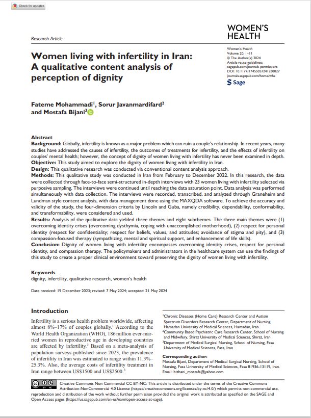 Explanation the dignity of infertile women in Iranian society: a qualitative content analysis study