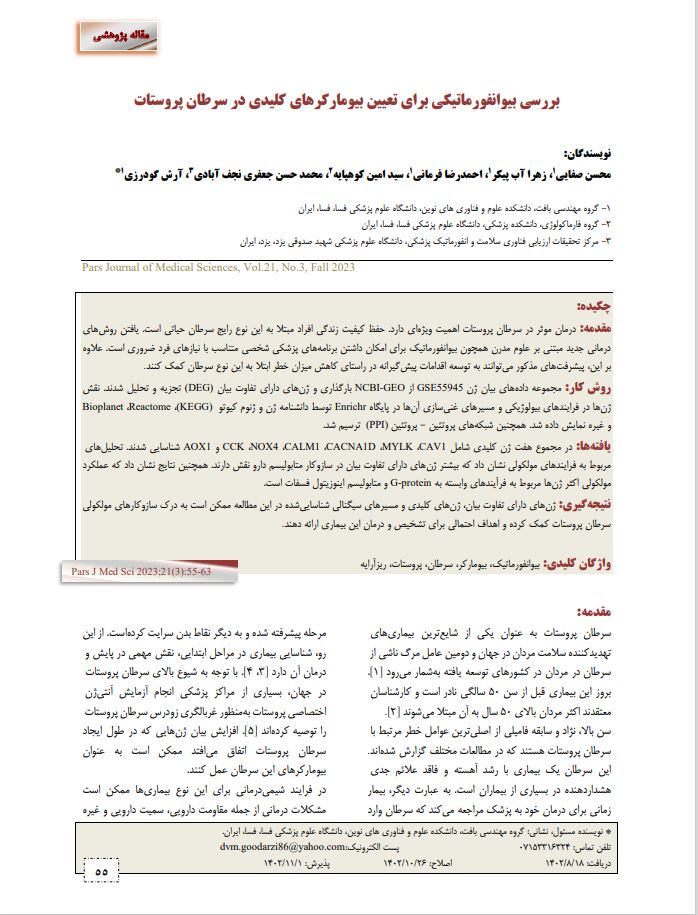 آنالیز پروفایل بیانی ژن ها در سرطان پروستات در جهت تعیین مارکرهای کلیدی دخیل در بیماری: یک مطالعه بیوانفورماتیکی