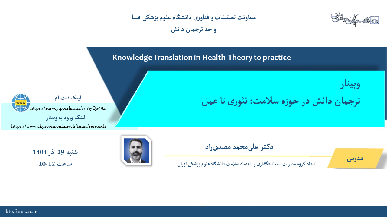 وبینار ترجمان دانش در حوزه سلامت: تئوری تا عمل برگزار شد